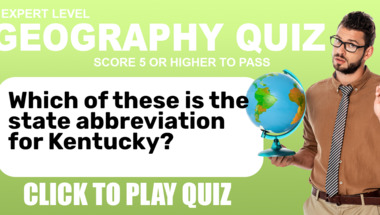 4/10 is what people on average are scoring in this Geography quiz so far. Are you ready to answer questions like "Which of these is the state abbreviation for Kentucky?" and "What US state is nicknamed "The Peach state"?"