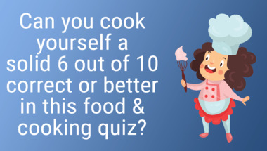 7/10 is what people on average are scoring in this Food & cooking quiz so far. Are you ready to answer questions like "What is norimaki sushi wrapped in?" and "What is the "mac" in mac and cheese?"