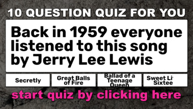If you can answer "Back in 1959 everyone listened to this song by Jerry Lee Lewis" and maybe even "Let us see if you remember this song by Paul Anka placed on the hit lists of 1958" there is a good chance that you're going to beat the average score of 6/10 in this 1950s Hits quiz
