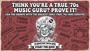 6/10 is the score to beat in this 1970s songs quiz to put yourself over the average quiz taker. But you're probably going to be able to answer questions "You must remember this hit from The Beatles which was heard all over the place in 196.." and "Who sang this song : "(What A) Wonderful World" around 1961?" easy!