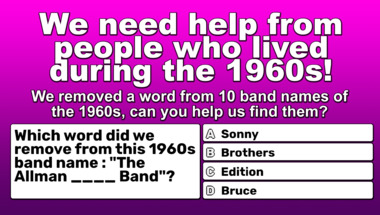 Trivia quiz for people over 60