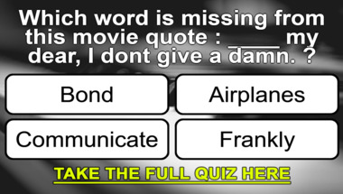 7/10 is the score to beat in this trivia quiz to put yourself over the average quiz taker. But you're probably going to be able to answer questions "Which word is missing from this movie quote : ""____ no place like home." ?" and "Which word is missing from this movie quote : ""____ my dear, I don't give a damn." ?" easy!