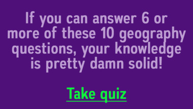 5/10 is the score to beat in this Geography quiz to put yourself over the average quiz taker. But you're probably going to be able to answer questions "What is the highest mountain on Earth?" and "Nairobi is the capital of which country?" easy!